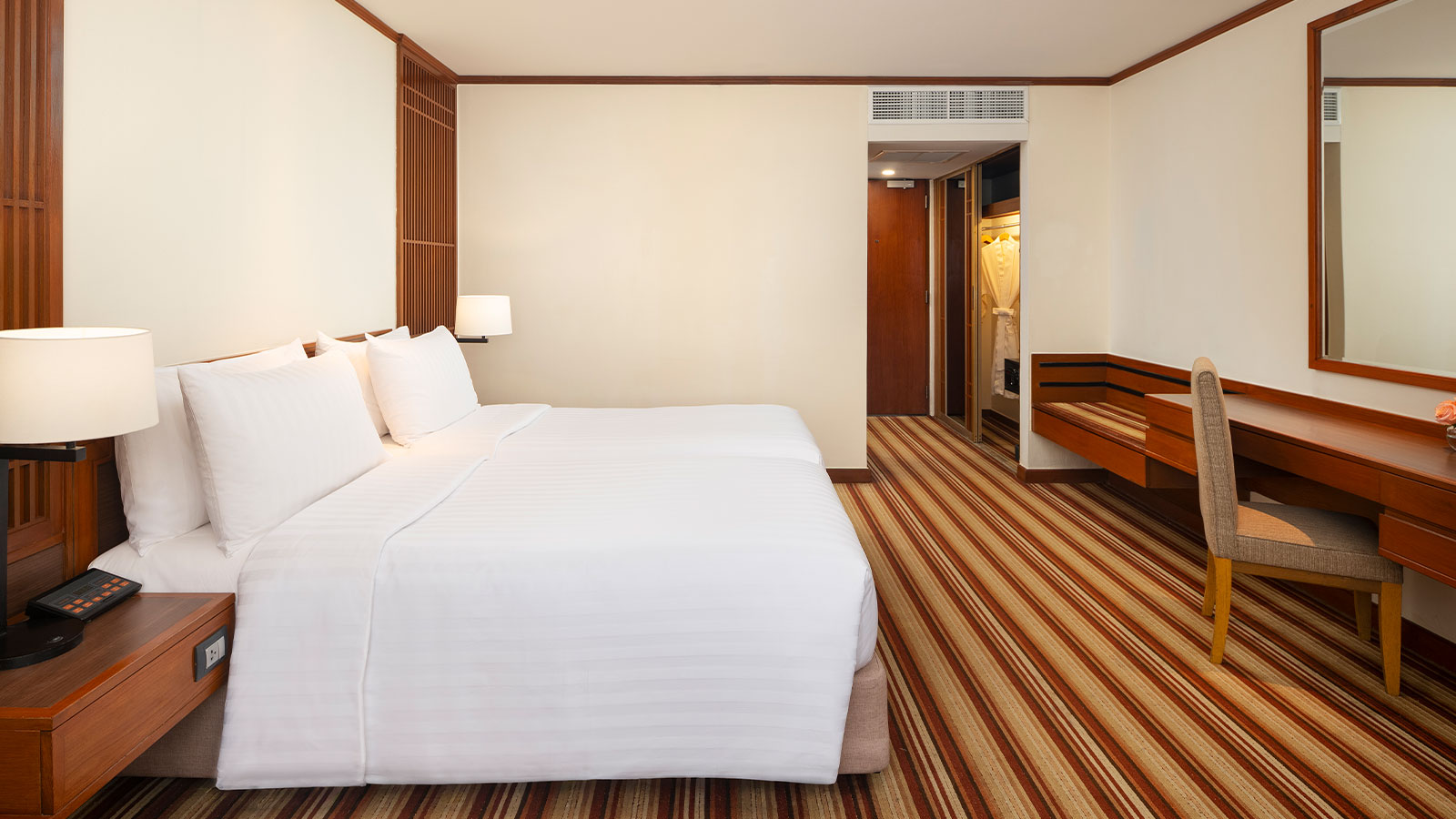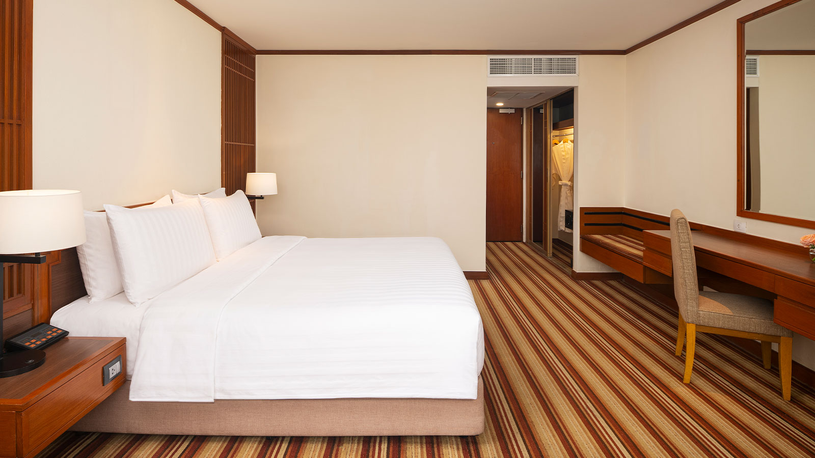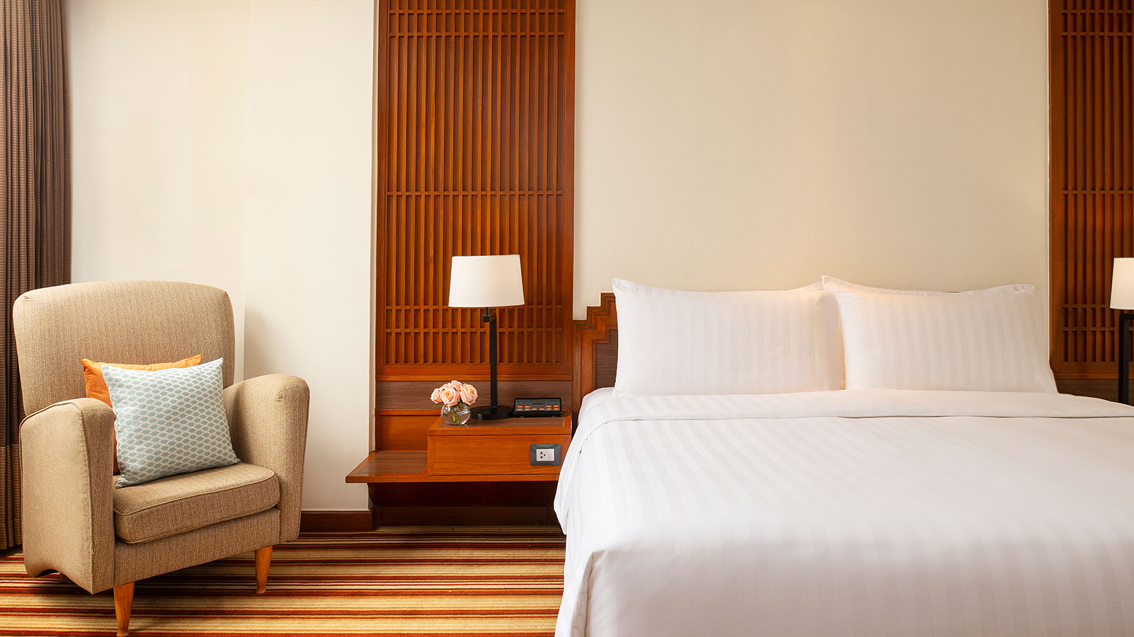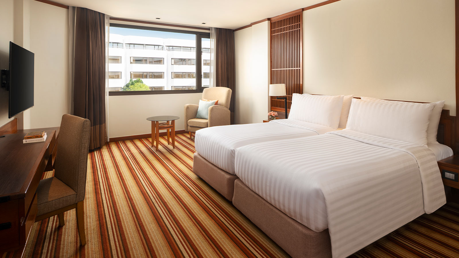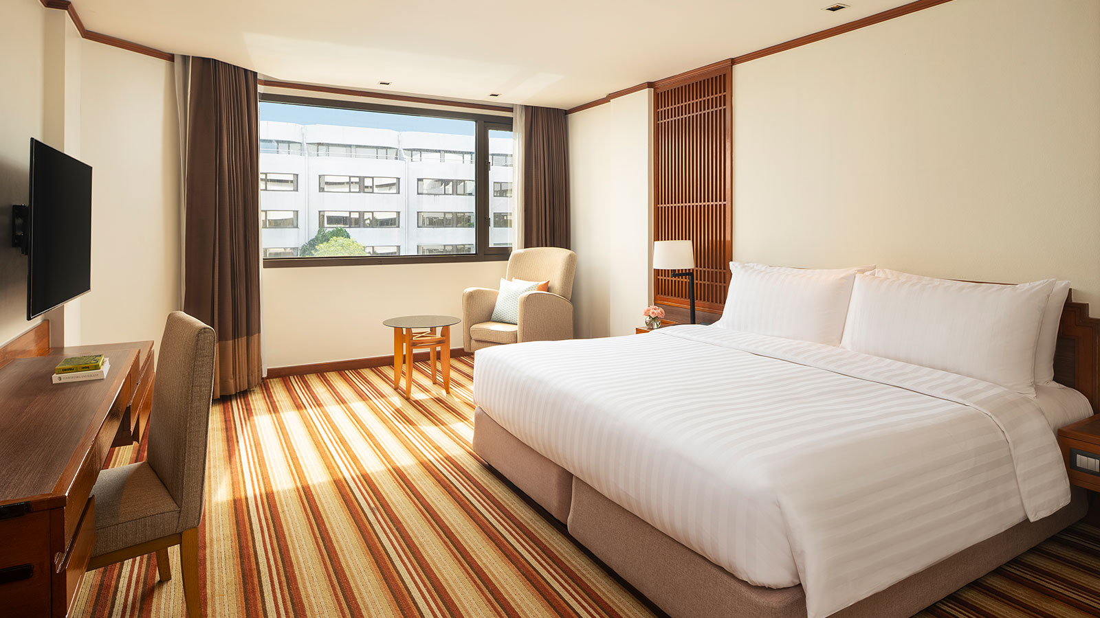 For undeniable comfort at an unbeatable value, our Deluxe Rooms are ideal for travellers looking for a good night's sleep. Decorated in a contemporary Thai style with natural light and warm tones, our rooms offer added amenities including free Wi-Fi and a flat-screen TV.